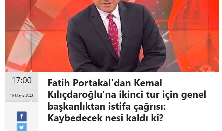 طالب فاتح برتقال كمال كليجدار اوغلو ان يستقيل من رئاسة حزب الشعب الجمهوري المعارض وان يدخل انتخابات الاعادة بصفته الشخصية وليس رئيسا لحزب المعارضة