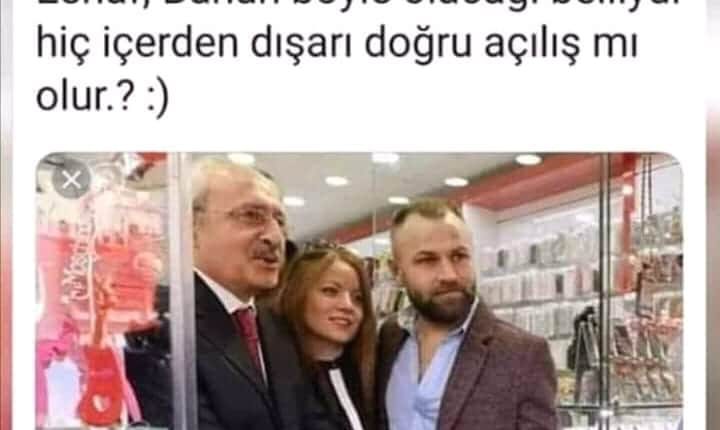 شارك ناشطون أتراك على وسائل التواصل صورة لرئيس حزب الشعب الجمهوري (chp) كمال قلجدار اوغلو ، حيث يظهر مع صاحب احد المتاجر واحدى الفتيات وممسكا بيده مقصا يقص به شريطا حريرا فيما يبدو انه افتتاح لاحدى المتاجر، لكن الصورة تظهر قلجدار اوغلوا ومن معه وهم يقفون بشكل معاكس ، اذ ان الافتتاح يكون بالتوجه نحو الداخل وليس نحو الخارج .