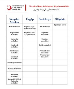 الأحياء المحظورة في ولاية نيفشيهر ادارة الهجرة بواسطة nasreddin آخر تحديث أغسطس 12, 2024 0 شارك تابعونا على التلغرام https://t.me/nevsehirolay تابعونا على الوتس اب https://whatsapp.com/channel/0029VaALnz3J3juvyKIoDd3E الأحياء المحظورة في ولاية نيفشيهر يمنع تسجيل العنوان في الأحياء التالية داخل المدينة والمناطق المجاورة : 0 شارك