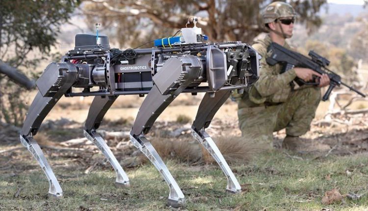 في الولايات المتحدة الامريكية تستخدم القوات المسلحة ربوتات تاخذ أشكال الكلاب في مناوراتها العسكرية ،حيث تقوم الروبوتات بمهمة مسح للمنطقة قبل نزول الجنود على الارض، وتعتبر جزءا من النظام الحربي الذي ستخدمه الولايات المتحدة في حروبها وذلك لاحتوائها على اجهزة استشعار واجهزة ارسال متطورة ، كما تقوم بارسال البيانات الى طواقم الطائرات الحربية .