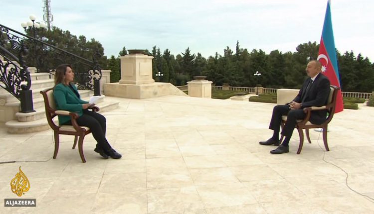 في لقاء مع قناة الجزيرة، قيم الرئيس الاذربيجاني الهام علييف العملية العسكرية التي تقوم بها أذربيجان لتحرير اقليم ” قراباغ ” المحتل من قبل الارمن .