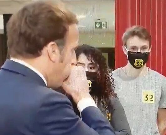 قام الرئيس الفرنسي ” ايمانويل ماكرون ” بلقاء عدد من الطلاب من اجل تنبيههم وتحذيرهم بضرورة اتخاذ التدابير بخصوص منع انتشار كورونا ، الا ان ماكرون قام بخلع كمامته عندما بدأ بالسعال مباشرة حيث طلب شرب الماء ، كما قام بوضع يده على فمه اثناء سعاله المتكرر ايضا ، ومن ثم عاد وارتدى كمامته من جديد .