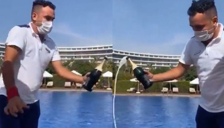 ويظهر في مقطع الفيديو شخص يفتح زجاجة شامبانيا باهظة الثمن في يوم الجمعة ،و ضمن احدى افخر الفنادق ، والتي تبلغ اجرة الغرفة الواحدة منها ٥٠٠٠ ليرة تركية يوميا .